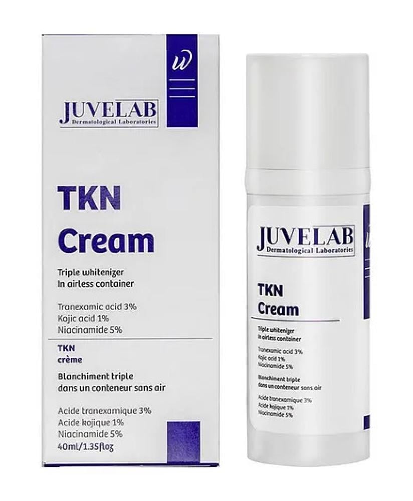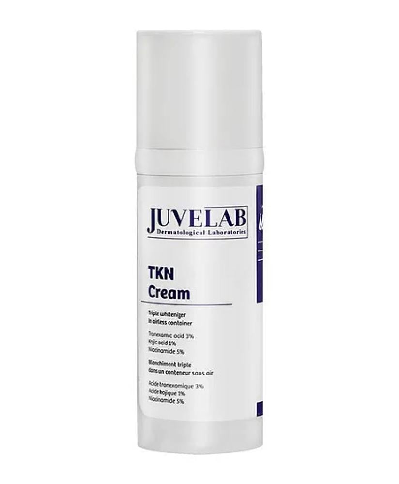 Juvelab TKN Cream عبارة عن تركيبة لتفتيح البشرة مصممة لمعالجة مشاكل التصبغ المختلفة ، بما في ذلك البقع والكلف وحروق الشمس. يساعد مزيجه من المكونات الفعالة على توحيد لون البشرة وتقليل علامات الشيخوخة وتحسين نسيج البشرة بشكل عام. مناسب للاستخدام اليومي على الوجه والرقبة واليدين ومناطق الجسم الأخرى ، يتميز هذا الكريم بقوام خفيف الوزن وغير دهني وآمن لجميع أنواع البشرة.